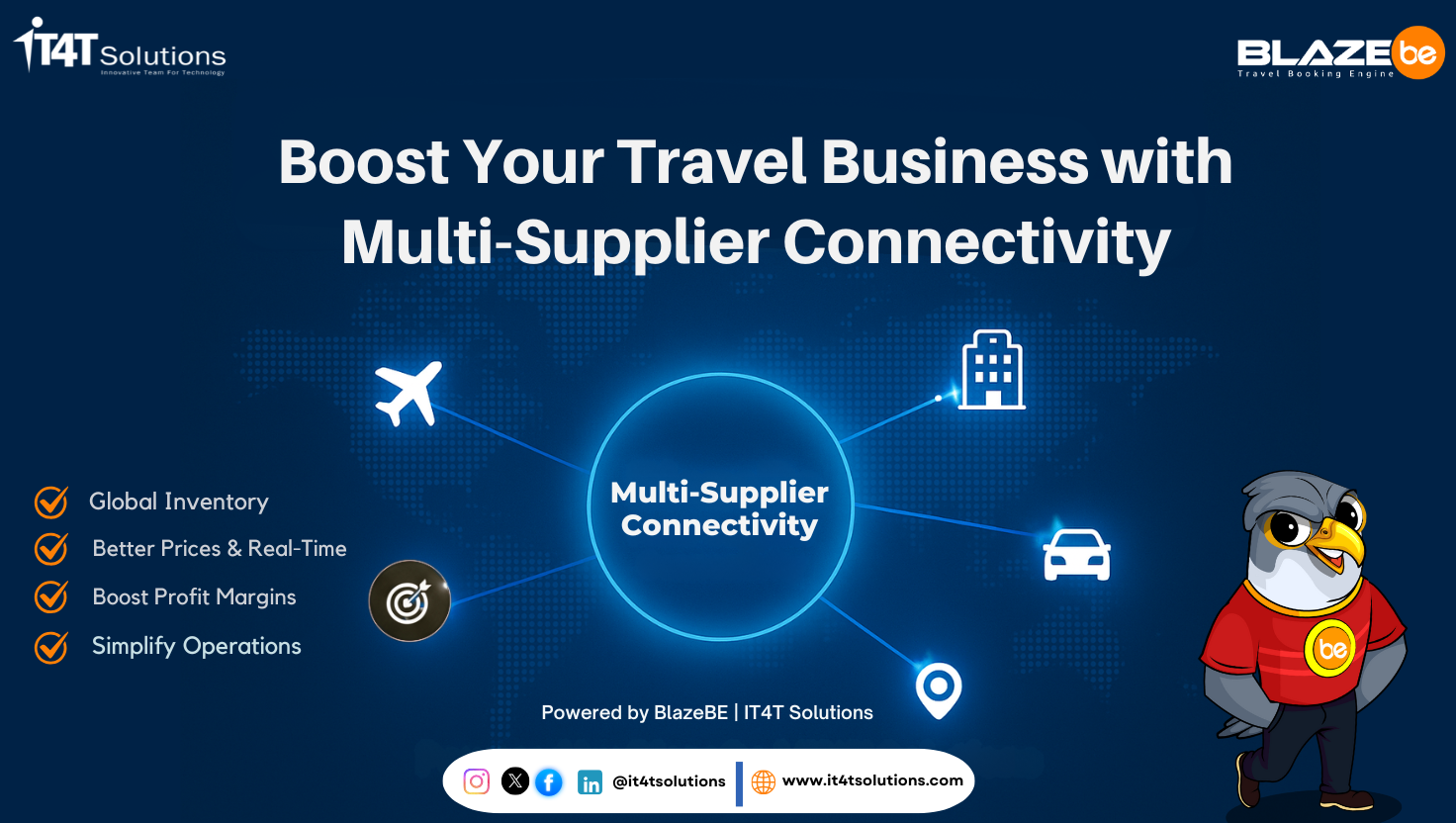If your travel booking system is connected to multiple flight, hotel, transfer, and more activity suppliers through APIs, you’re already one step ahead of competitors still depending on limited or manual sources. Let’s explore how multi-supplier API connectivity can transform your travel business — and how BlazeBe, the powerful booking engine by IT4T Solutions, makes it all simple.
